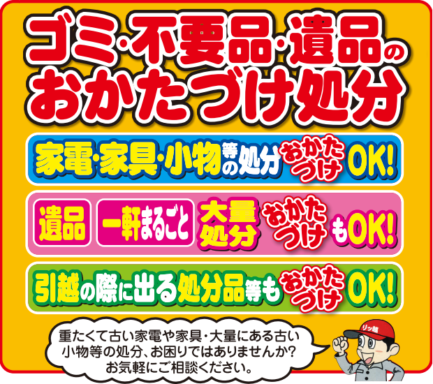 リサイクル品の買取のみ、不用品のお片付けのみも承っております!